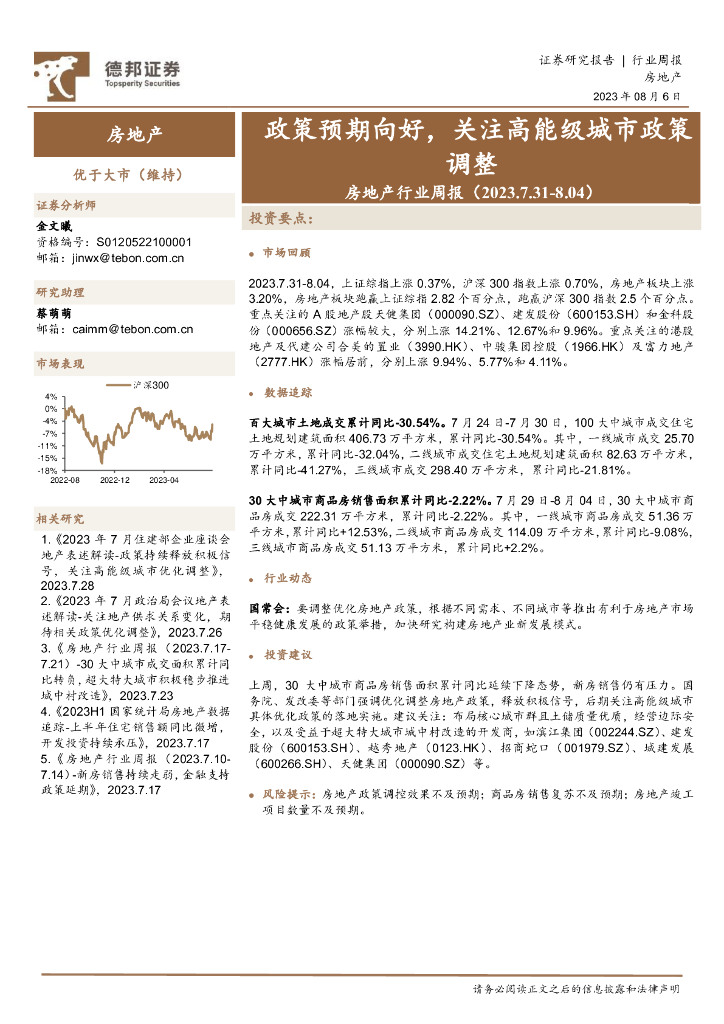 德邦证券:房地产行业周报:政策预期向好,关注高能级城市政策调整.pdf