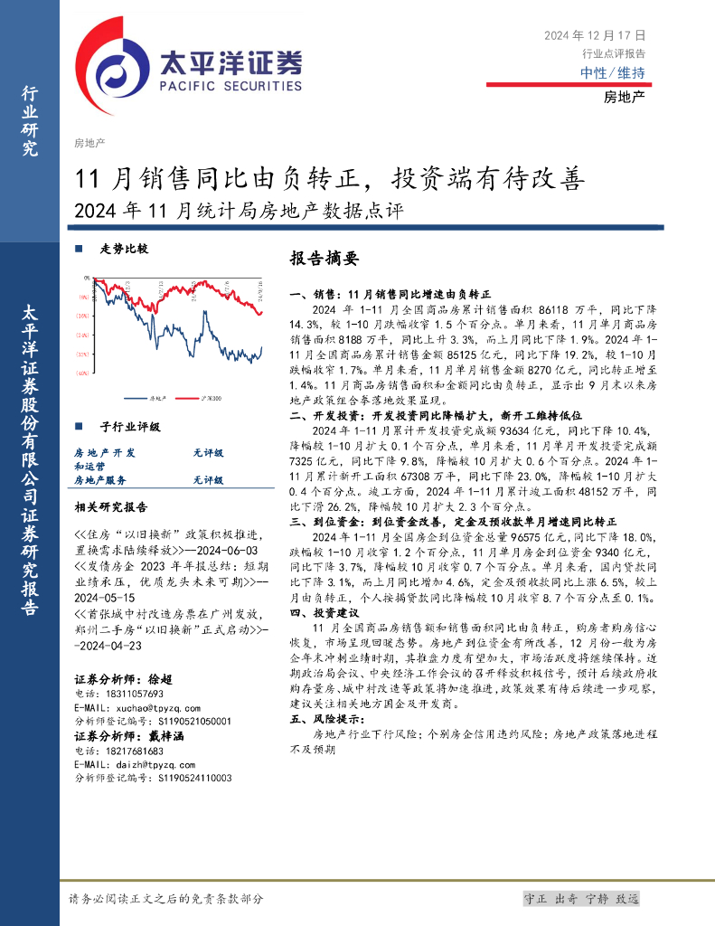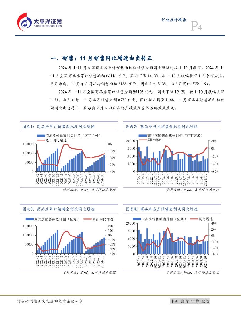 太平洋证券:2024年11月统计局房地产数据点评:11月销售同比由负转正,投资端有待改善.pdf