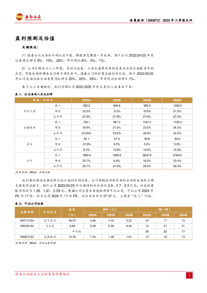 西南证券:海晨股份(300873)-2023年三季报点评:前三季度业绩承压,加码自动化业务持续成长.pdf