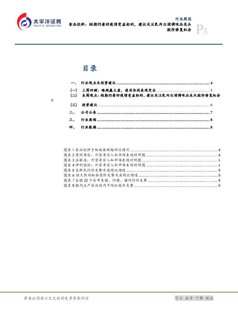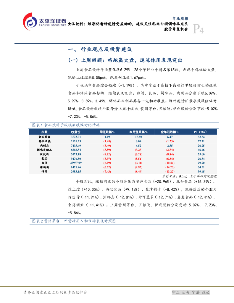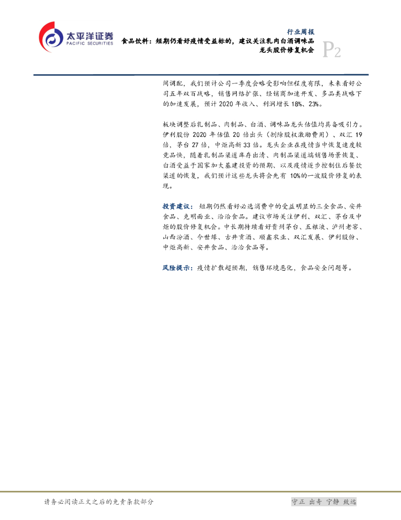 太平洋证券:食品饮料:短期仍看好疫情受益标的,建议关注乳肉白酒调味品龙头股价修复机会.pdf