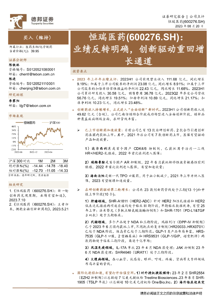德邦证券:恒瑞医药(600276)-业绩反转明确,创新驱动重回增长通道.pdf