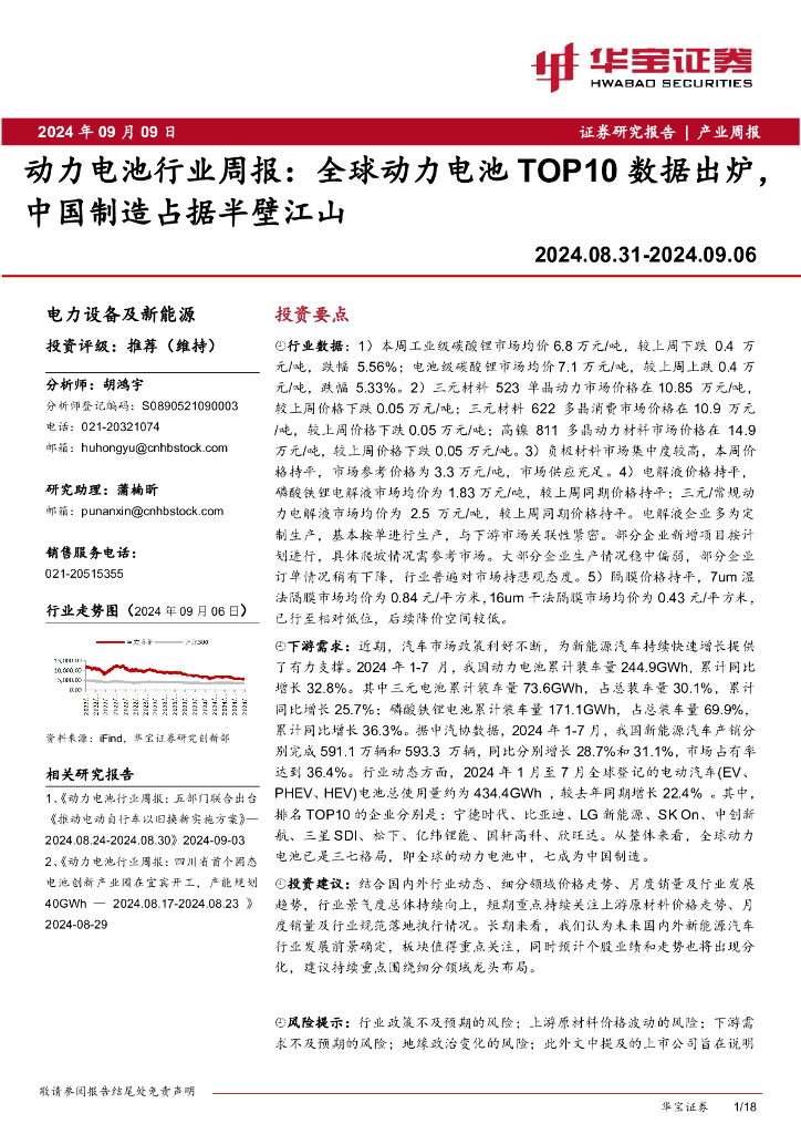 华宝证券:动力电池行业周报:全球动力电池TOP10数据出炉,中国制造占据半壁江山.pdf