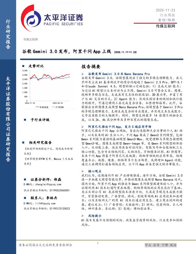 太平洋证券:传媒互联网行业周报:谷歌Gemini3.0发布,阿里千问App上线.pdf