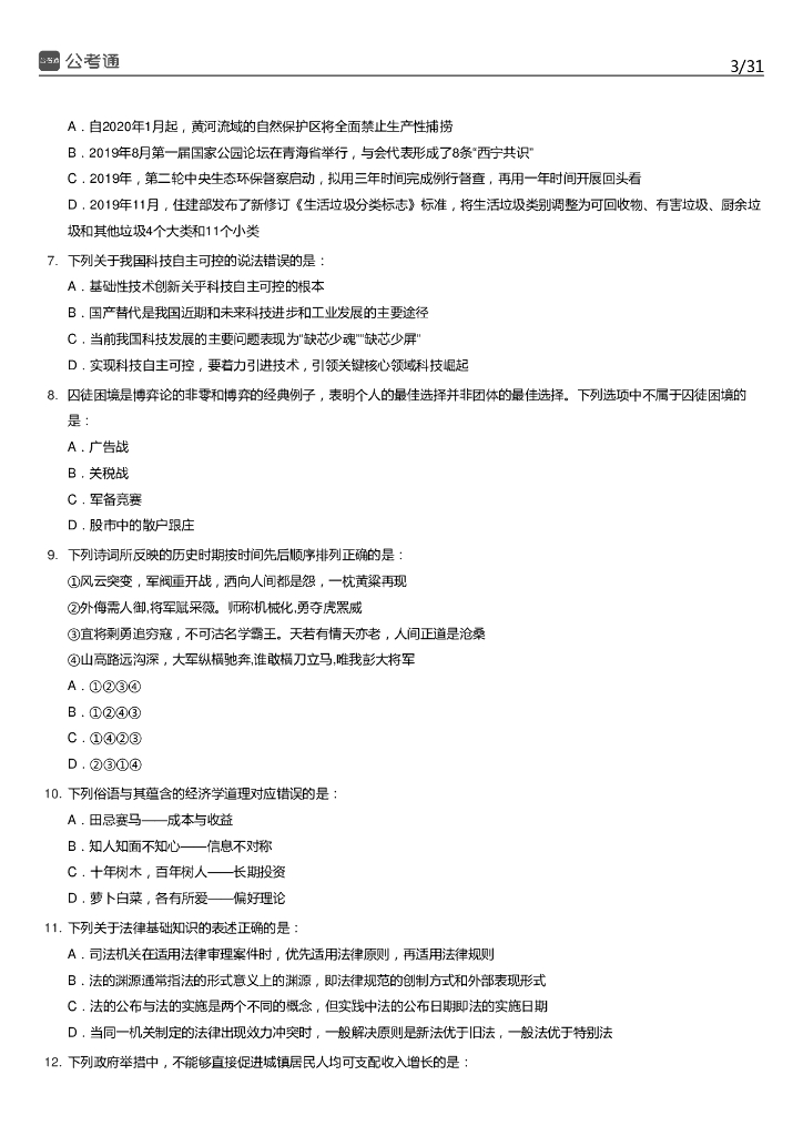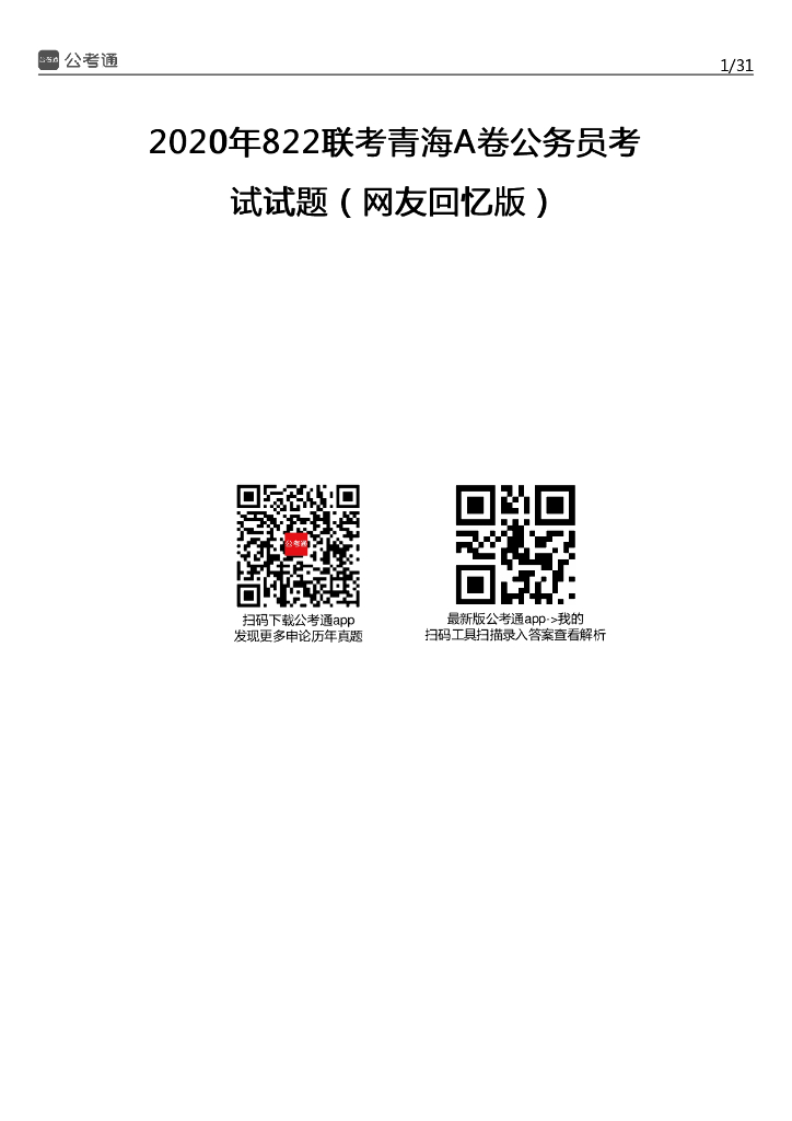 2020年青海公务员考试行测试题及答案(A卷).pdf