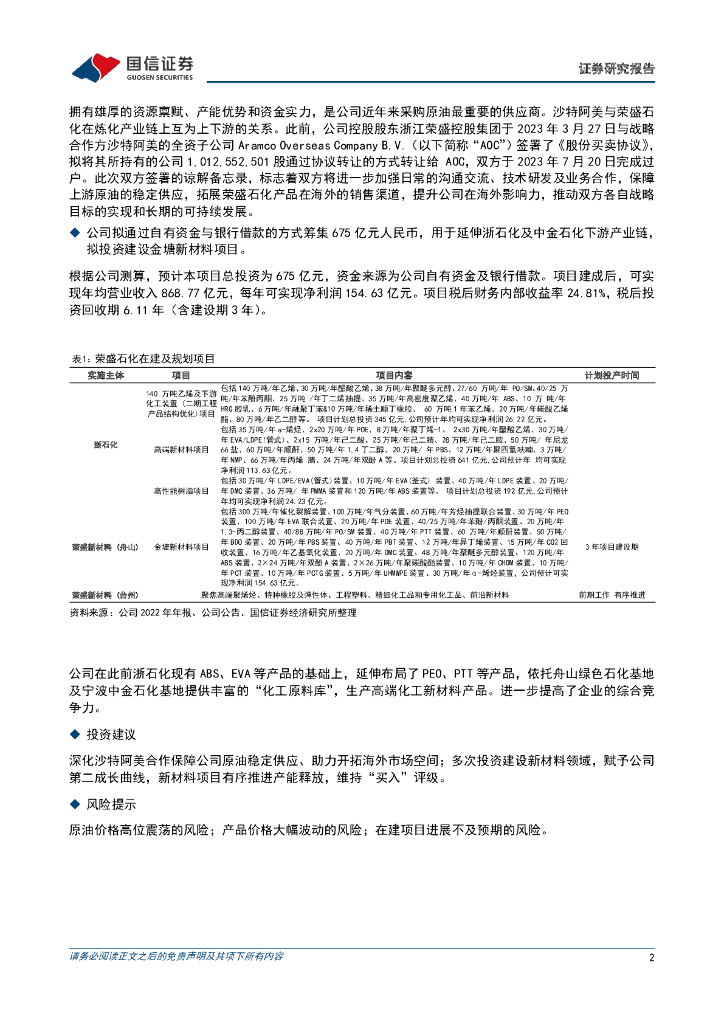 国信证券:荣盛石化(002493)-深化与沙特阿美合作,投资675亿建设金塘新材料项目.pdf