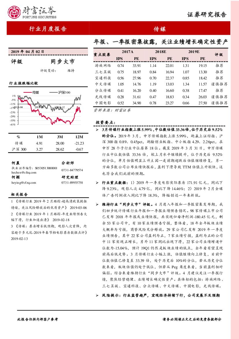 财富证券:传媒行业月度报告:年报、一季报密集披露,关注业绩增长确定性资产.pdf