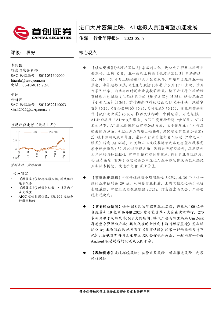 首创证券:传媒行业简评报告:进口大片密集上映,AI虚拟人赛道有望加速发展.pdf