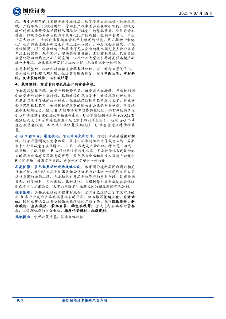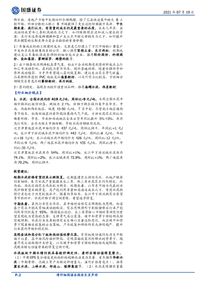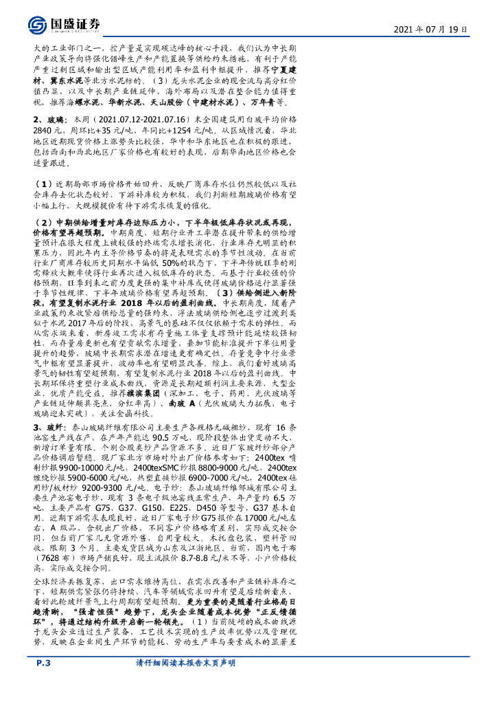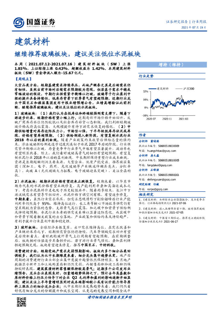 国盛证券:建筑材料行业周报:继续推荐玻璃板块,建议关注低位水泥板块.pdf