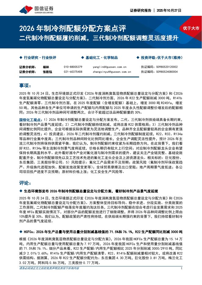 国信证券:基础化工行业2026年制冷剂配额分配方案点评:二代制冷剂配额履约削减,三代制冷剂配额调整灵活度提升.pdf