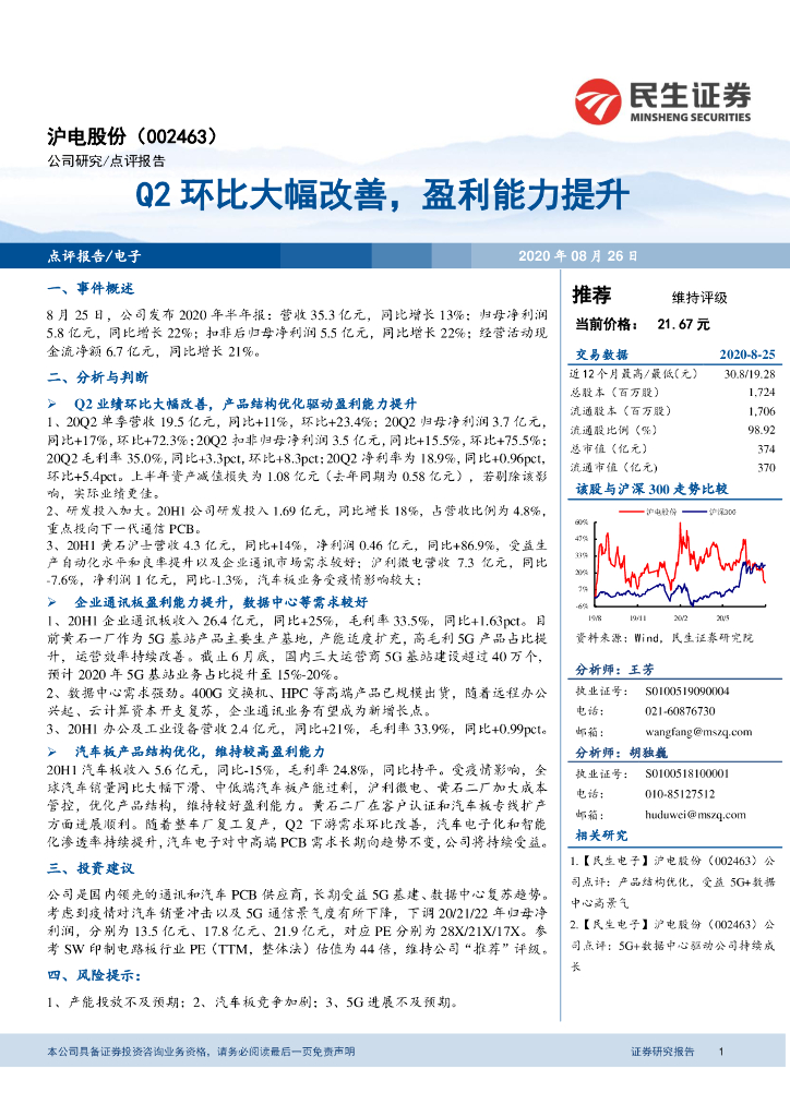 民生证券:沪电股份(002463)-Q2环比大幅改善,盈利能力提升.pdf