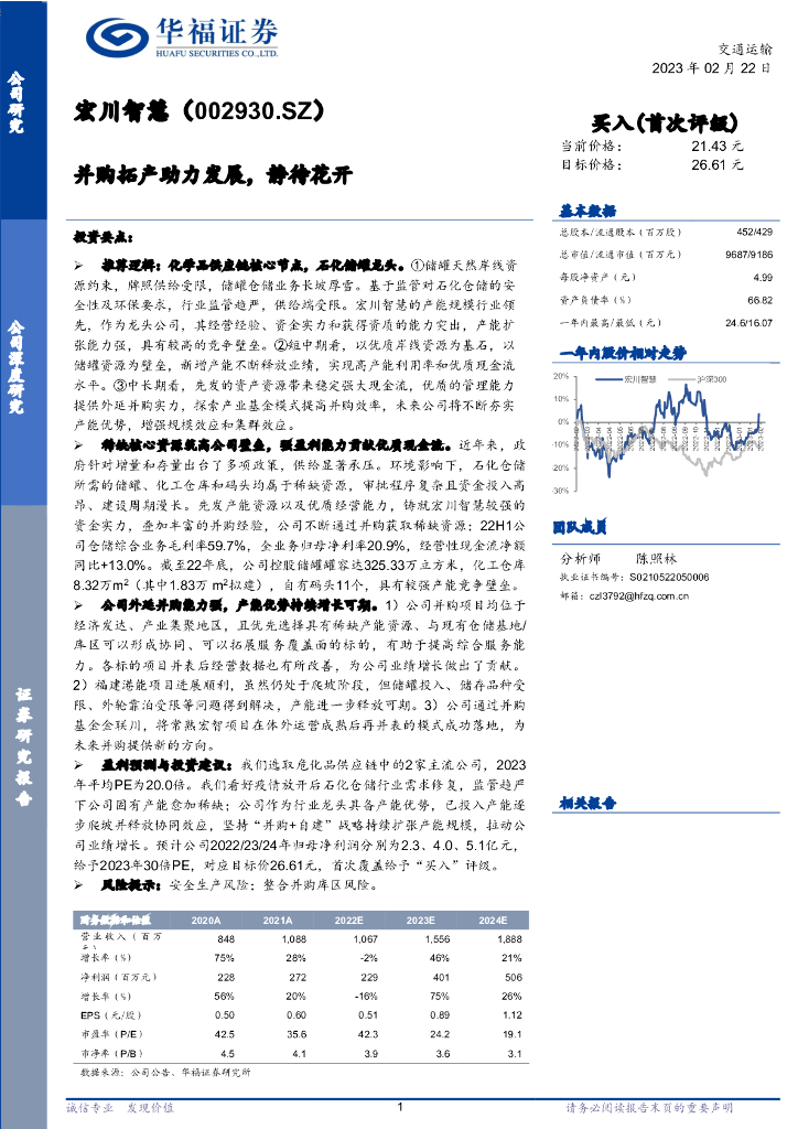 华福证券:宏川智慧(002930)-并购拓产助力发展,静待花开.pdf
