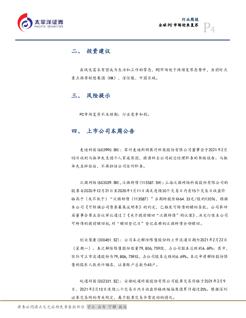 太平洋证券:信息行业周报:全球PC市场迎来复苏.pdf