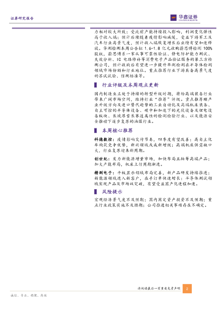 华鑫证券:机械行业第43周周报:看好机床行业周期上行,关注半导体设备及零部件板块.pdf