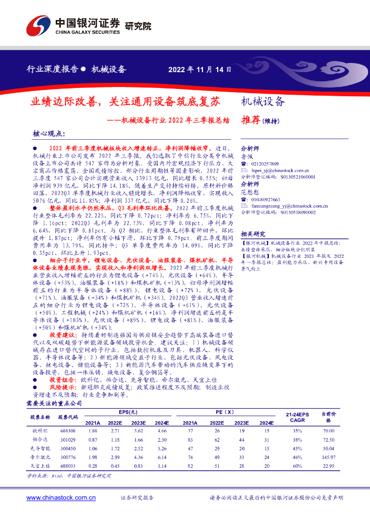 中国银河:机械设备行业2022年三季报总结:业绩边际改善,关注通用设备筑底复苏.pdf