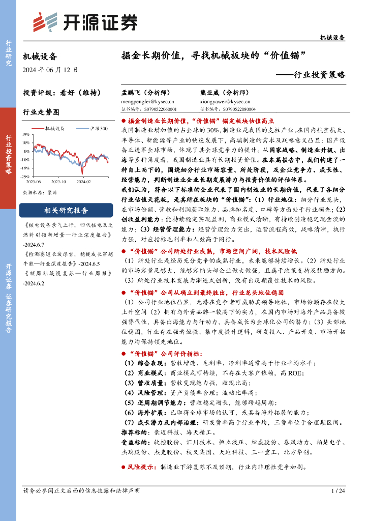 开源证券:机械设备行业投资策略:掘金长期价值,寻找机械板块的“价值锚”.pdf