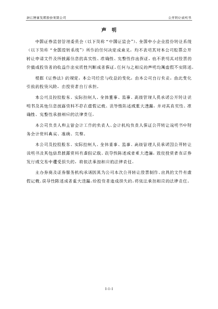 浙江特富发展股份有限公司新三板挂牌公开转让说明书(申报稿).pdf