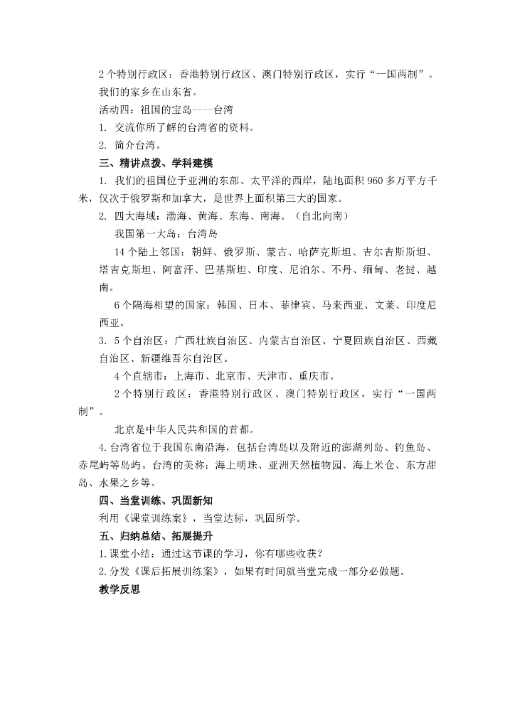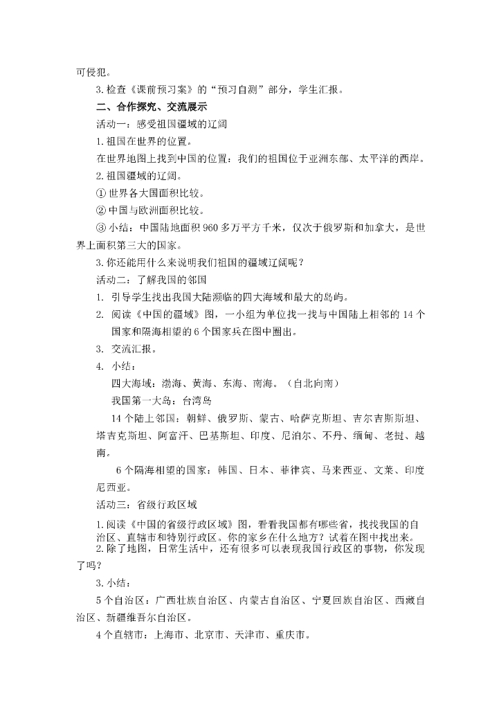 2021五年级上册 人教版小学道德与法治3.1 我们神圣的国土 1-2课时 非表格.doc