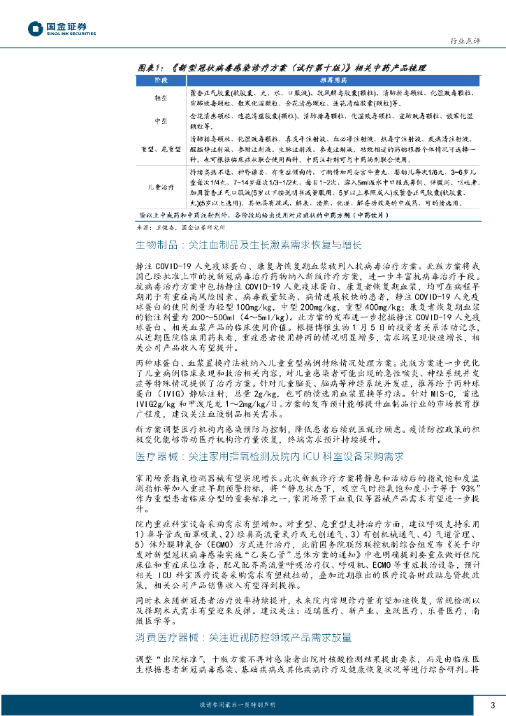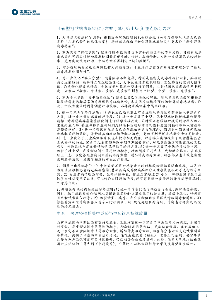 国金证券:医疗行业行业研究:新冠诊疗方案第十版发布,持续把握疫后复苏和抗疫需求.pdf