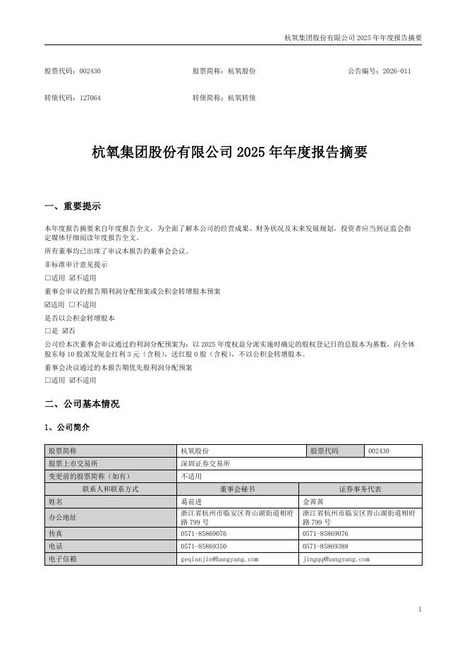 002430-杭氧股份:2025年年度报告摘要.pdf