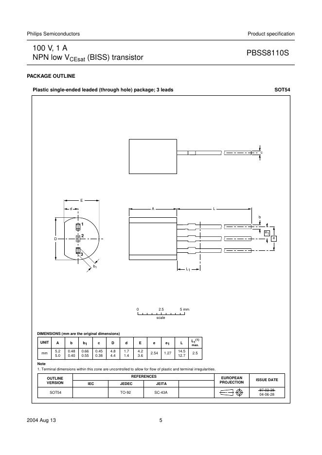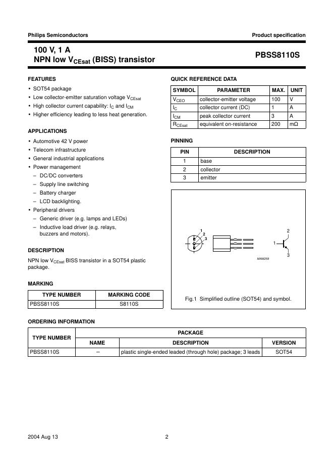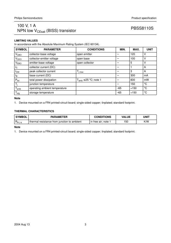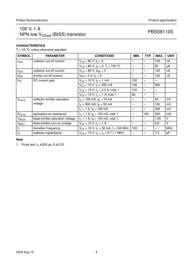 philips PBSS8110S 100 V, 1 A NPN low VCEsat (BISS) transistor 数据手册.pdf