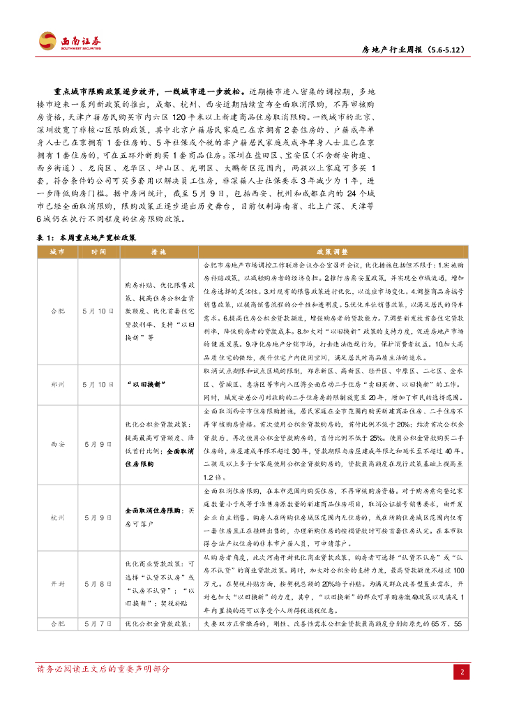 西南证券:房地产行业周报:重点城市限购逐步放开,“以旧换新”陆续实施.pdf