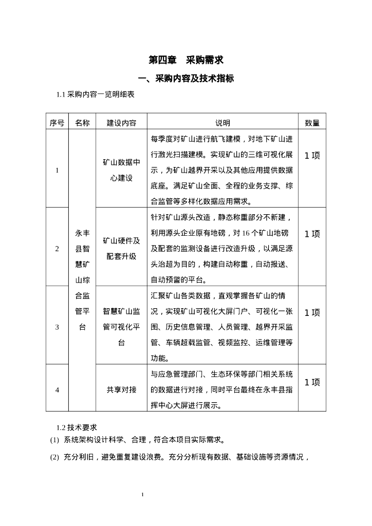 智慧矿山-永丰县智慧矿山综合监管平台项目技术需求或服务需求招标文件.doc