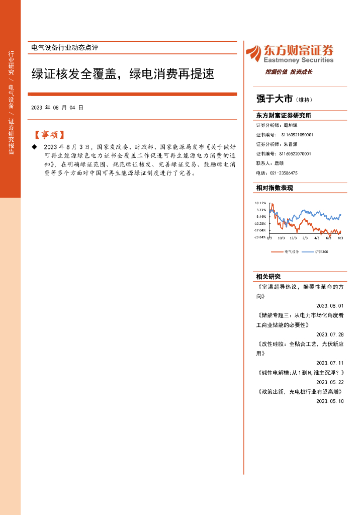 东方财富证券:电气设备行业动态点评:绿证核发全覆盖,绿电消费再提速.pdf