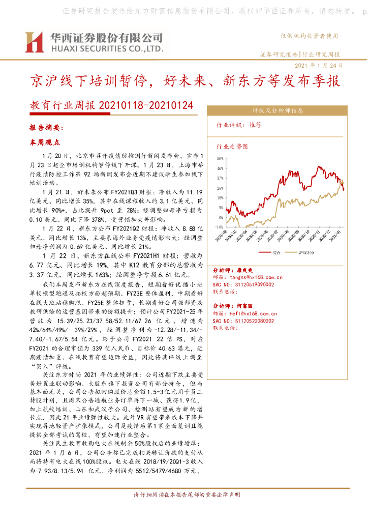 华西证券:教育行业周报:京沪线下培训暂停,好未来、新东方等发布季报.pdf