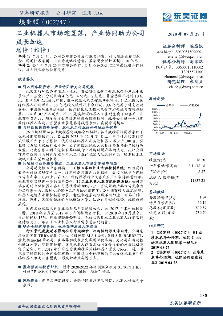东吴证券:埃斯顿(002747)-工业机器人市场迎复苏,产业协同助力公司成长加速.pdf