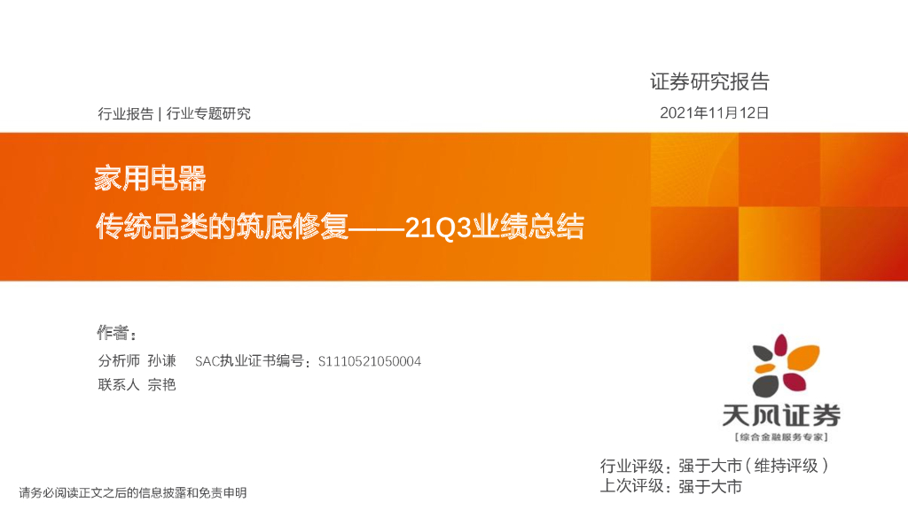 天风证券:家用电器21Q3业绩总结:传统品类的筑底修复.pdf