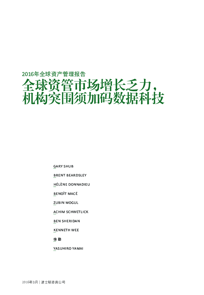 波士顿咨询:2016年全球资产管理报告:全球资管市场增长乏力,机构突围须加码数据科技.pdf