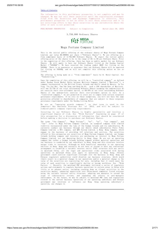 Mega Fortune Company Limited美股纳斯达克IPO上市招股说明书.pdf