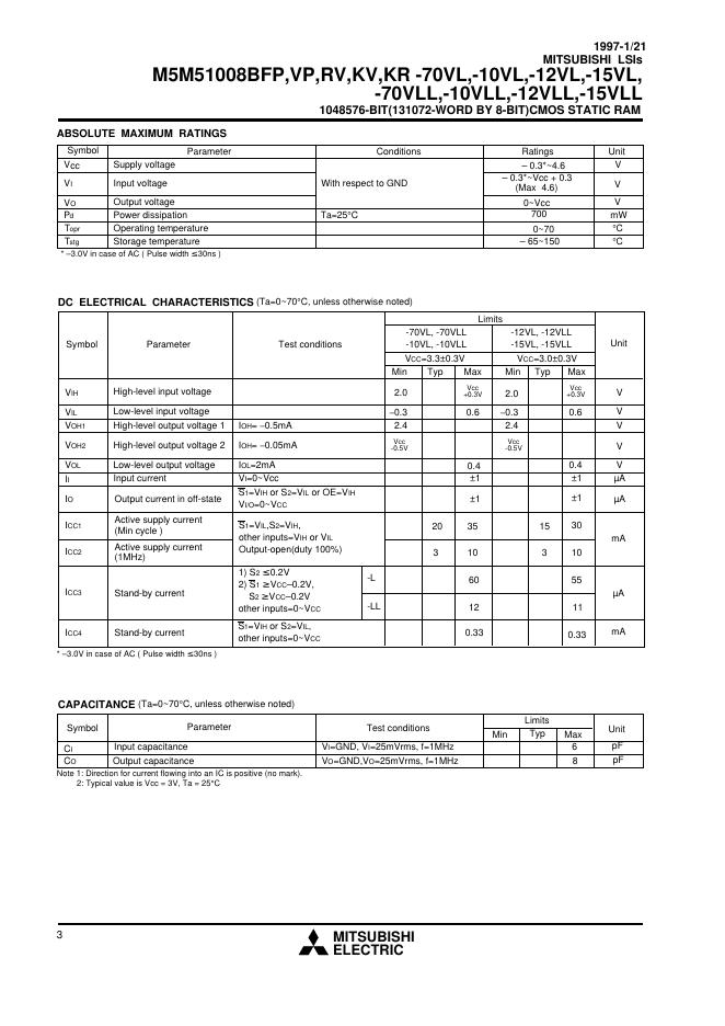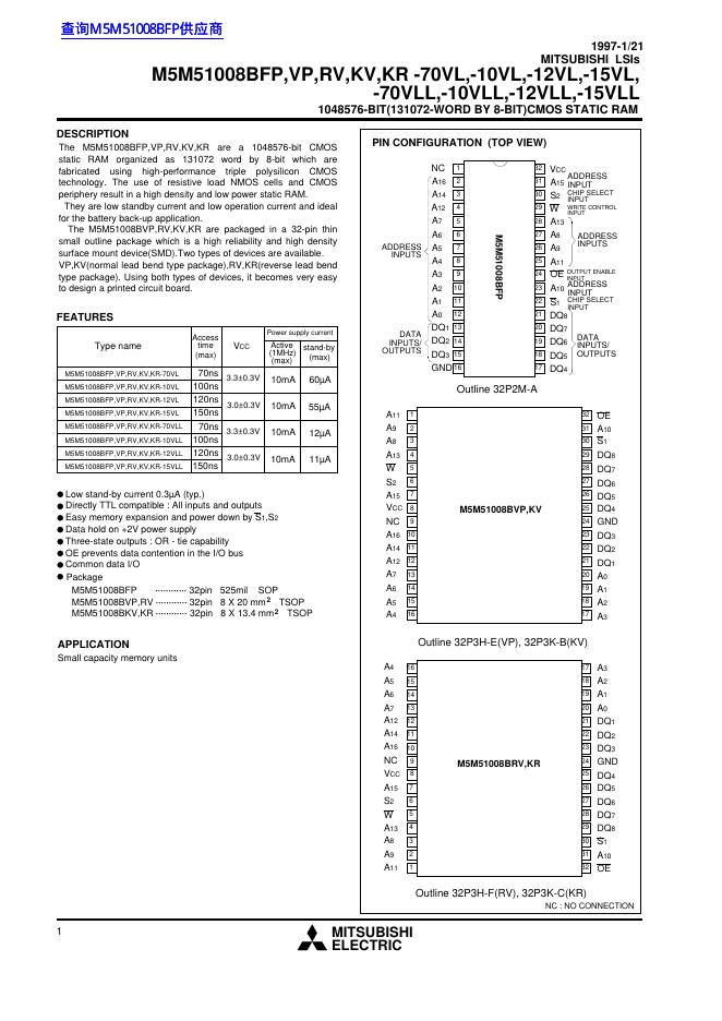 MITSUBISHI ELECTRIC M5M51008BFP,VP,RV,KV,KR -70VL,-10VL,-12VL,-15VL,-70VLL,-10VLL,-12VLL,-15VLL 数据手册.pdf