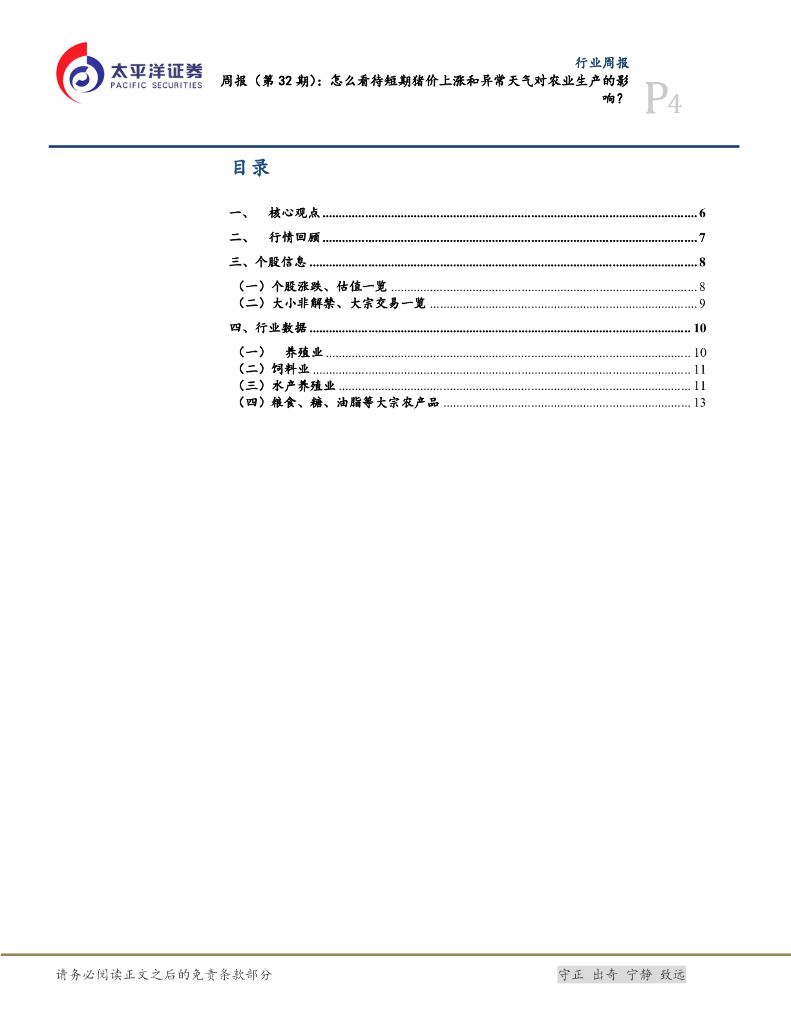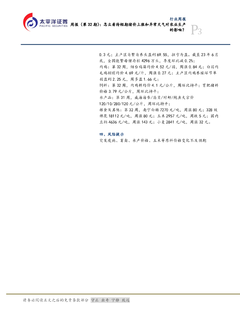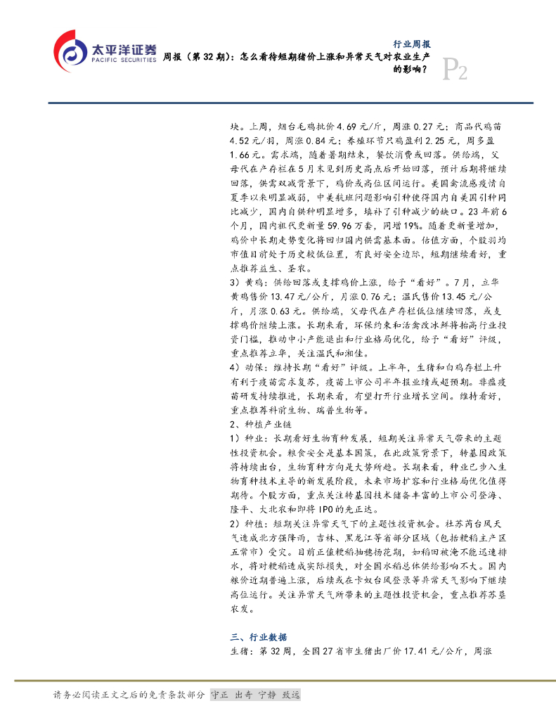 太平洋证券:农林牧渔周报(第32期):怎么看待短期猪价上涨和异常天气对粮食生产的影响?.pdf