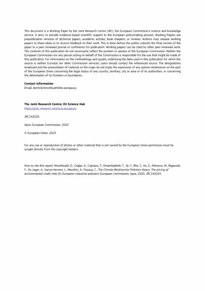 欧洲央行:气候-生物多样性-污染关联:为欧洲工业污染者定价环境信用风险(英文版).pdf
