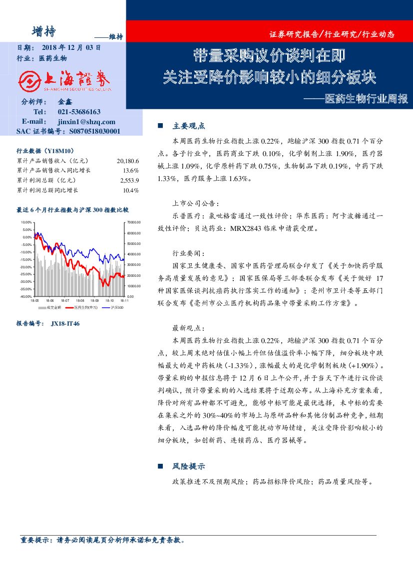 上海证券:医药生物行业周报:带量采购议价谈判在即 关注受降价影响较小的细分板块.pdf