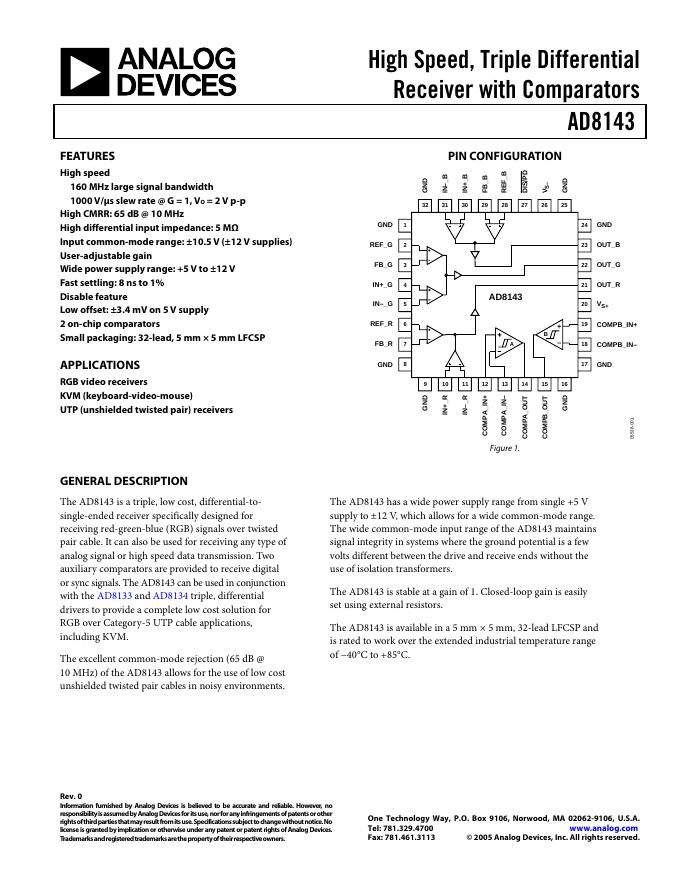 ANALOG DEVICES AD8143 英文产品数据手册 Rev 0.pdf