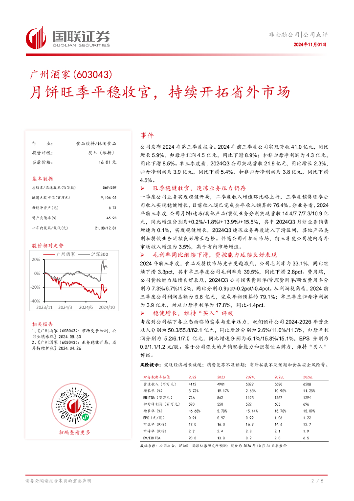 国联证券:广州酒家(603043)-月饼旺季平稳收官,持续开拓省外市场.pdf