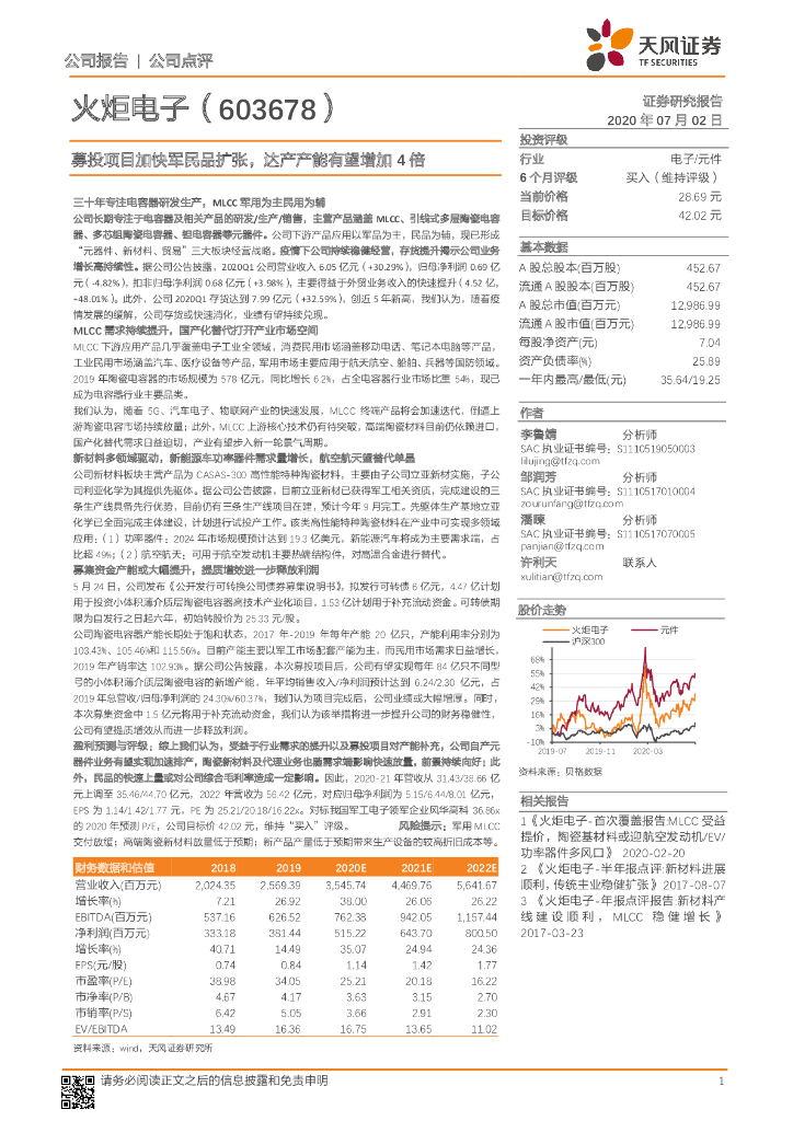 天风证券:火炬电子(603678)-募投项目加快军民品扩张,达产产能有望增加4倍.pdf