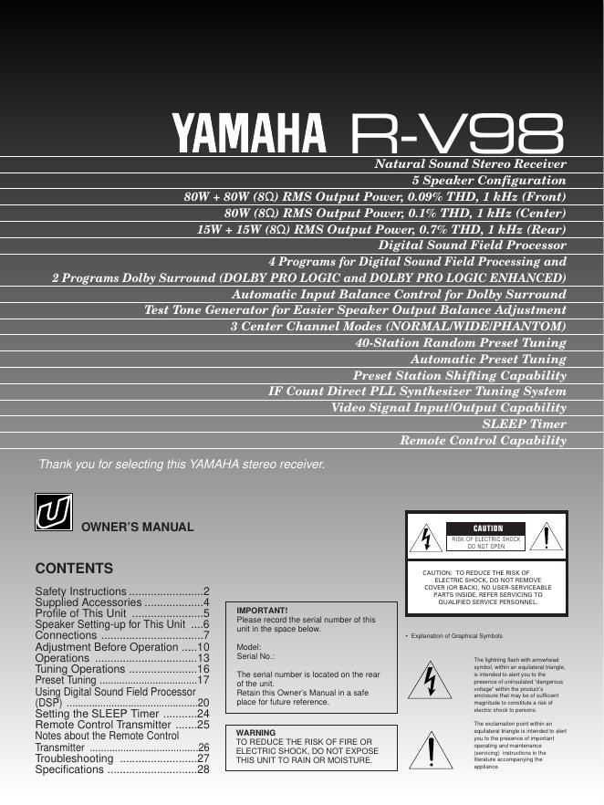 YAMAHA R-V98 Natural Sound Stereo Receiver 用户手册.pdf
