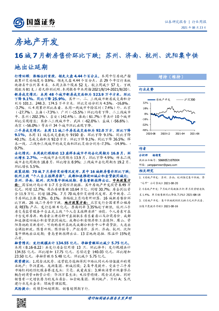 国盛证券:房地产开发行业周报:16城7月新房售价环比下跌;苏州、济南、杭州、沈阳集中供地出让延期.pdf