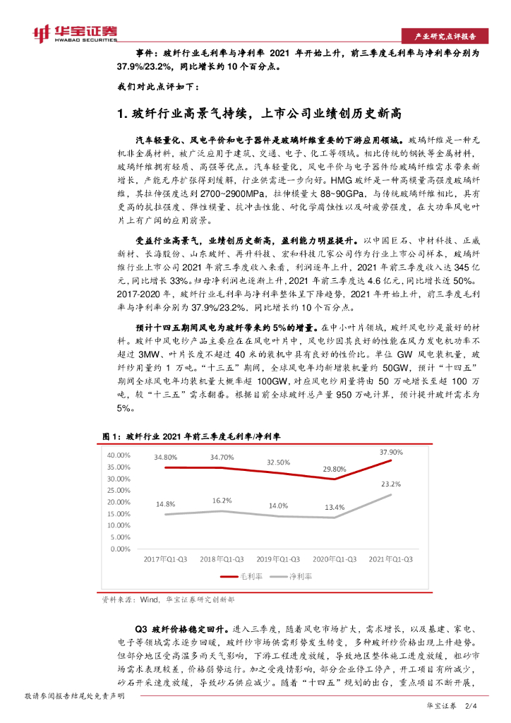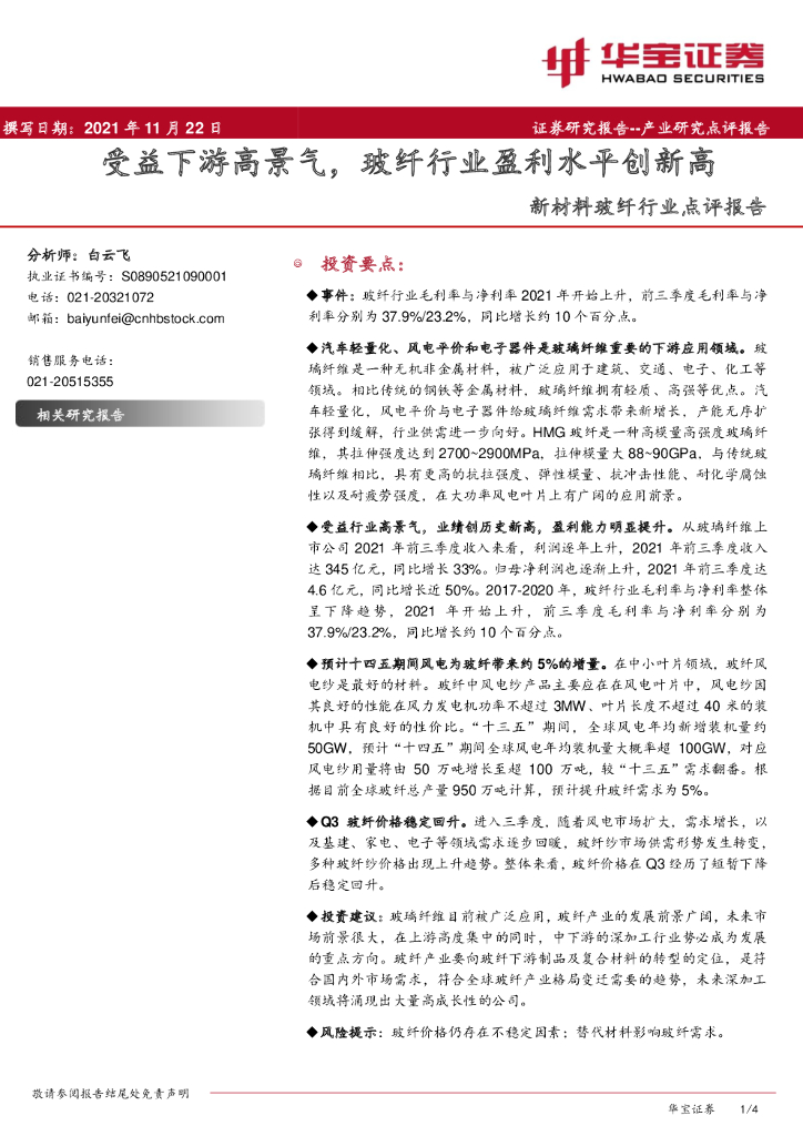 华宝证券:新材料玻纤行业点评报告:受益下游高景气,玻纤行业盈利水平创新高.pdf