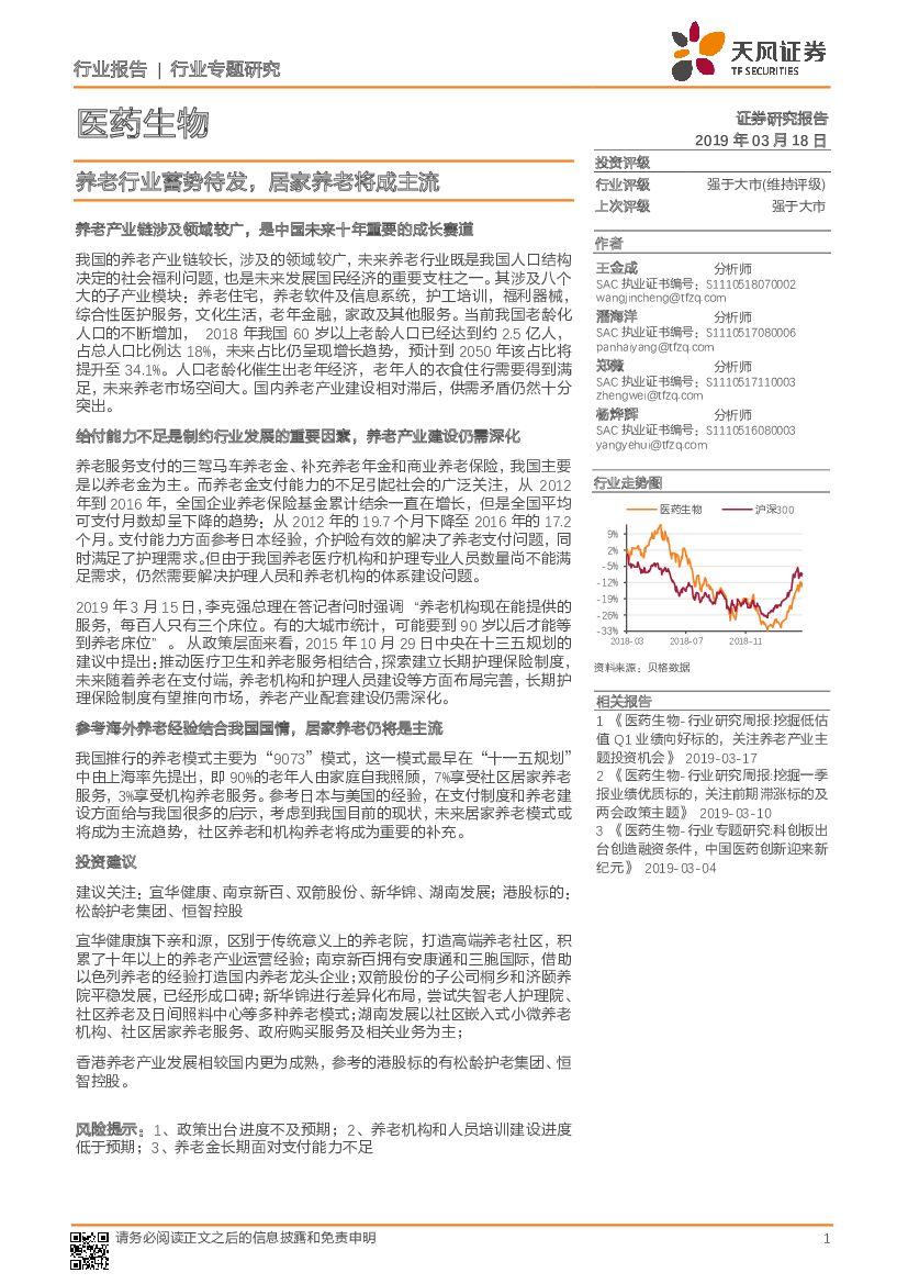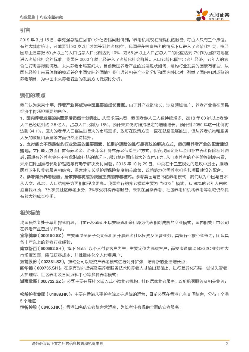 天风证券:医药生物行业专题研究:养老行业蓄势待发,居家养老将成主流.pdf