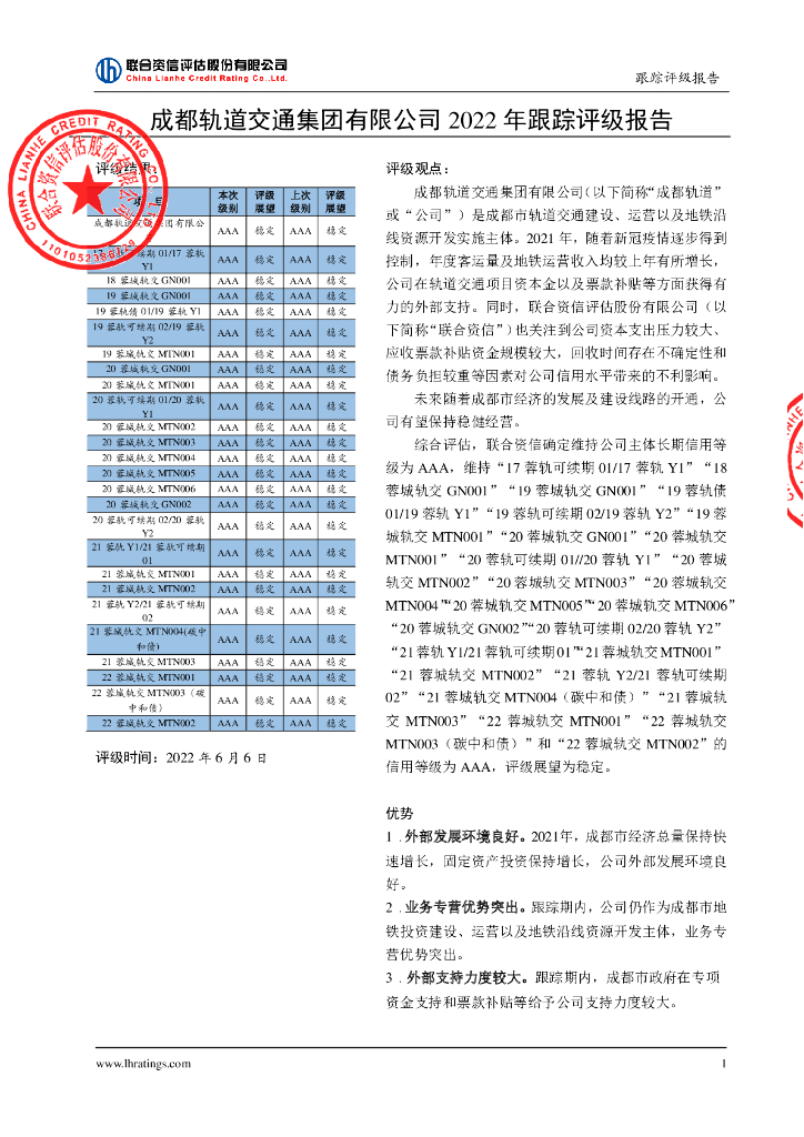 联合资信:成都轨道交通集团有限公司2022跟踪评级报告.pdf