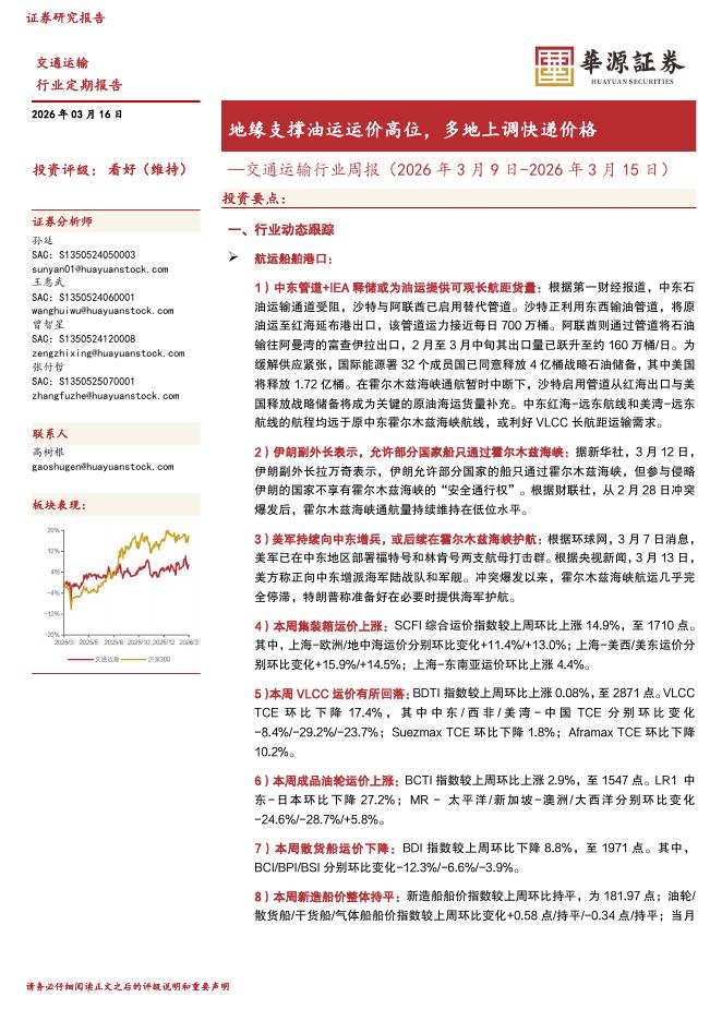 华源证券:交通运输行业周报:地缘支撑油运运价高位,多地上调快递价格.pdf