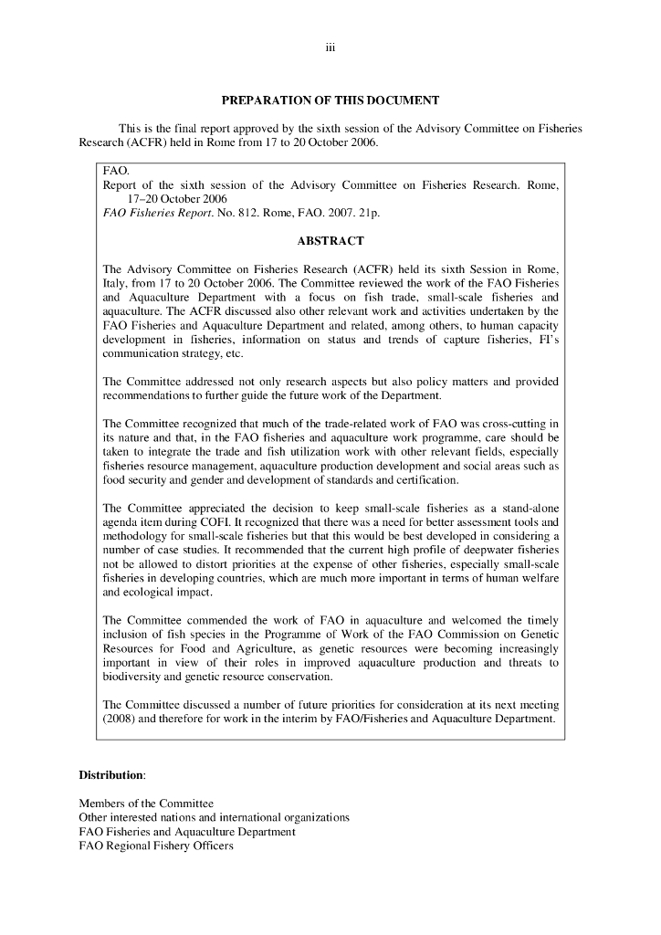 FAO联合国粮农组织:渔业研究咨询委员会第六届会议的报告(2006年10月17日至20日 罗马)(英文版).pdf