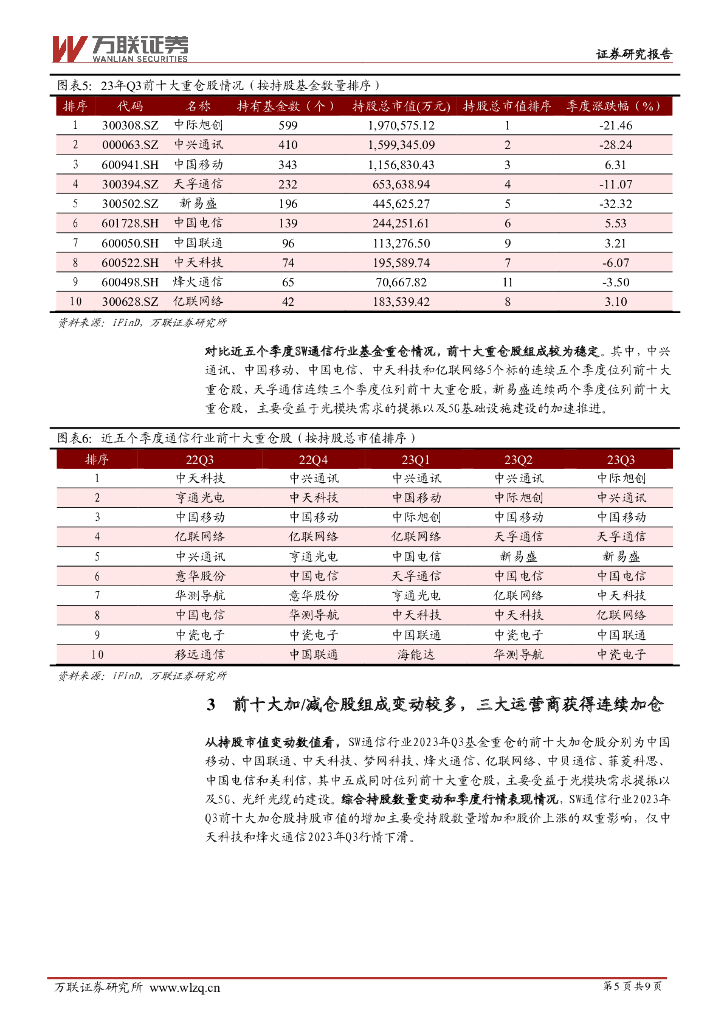 万联证券:通信行业跟踪报告:运营商、设备商及光模块厂商获基金配置青睐.pdf