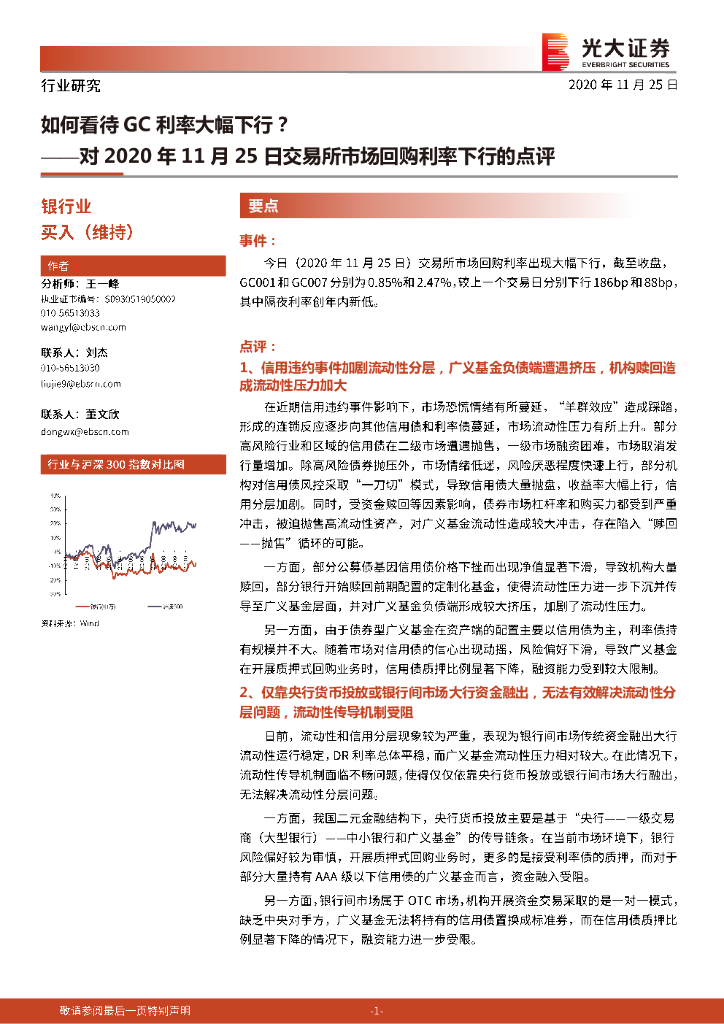 光大证券:银行业:对2020年11月25日交易所市场回购利率下行的点评-如何看待GC利率大幅下行?.pdf