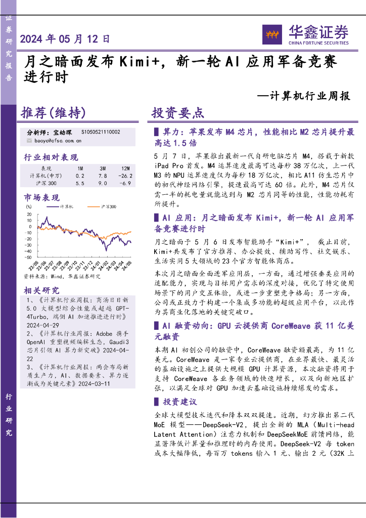 华鑫证券:计算机行业周报:月之暗面发布Kimi+,新一轮AI应用军备竞赛进行时.pdf