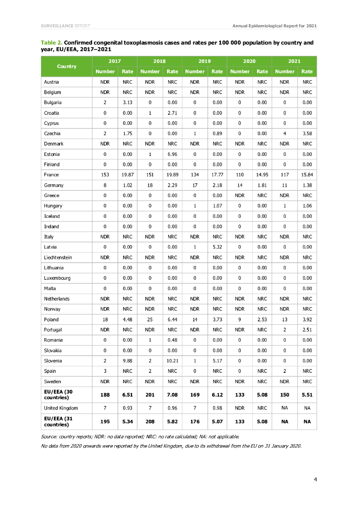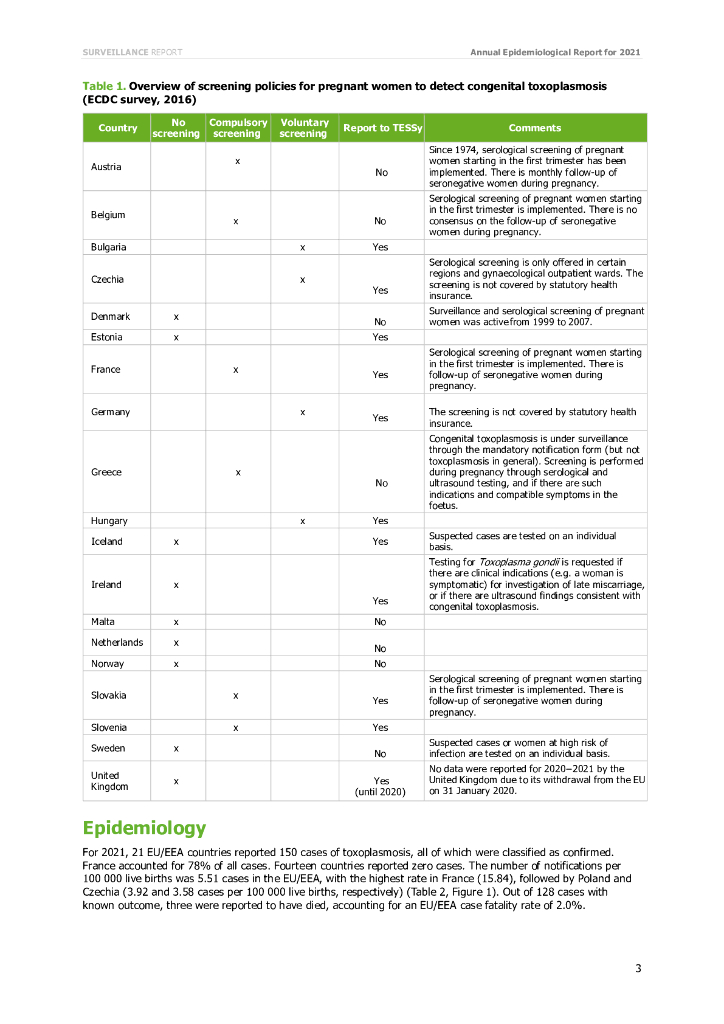 欧洲疾控中心:先天性弓形虫病-2021年年度流行病学报告(英文版).pdf